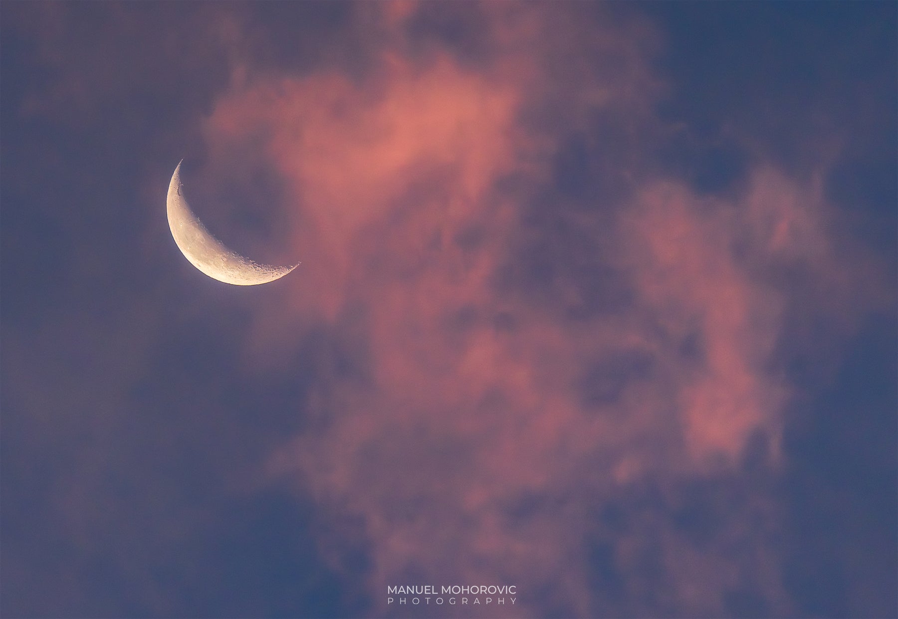 Mondfotografie Workshop Schweiz - Sichelmond im zarten Himmelsrot - Manuel Mohorovic Photography